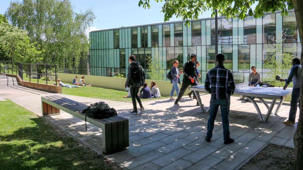 Kingston Hill is a beautiful, leafy, self-contained site with a mix of modern and historic buildings and a community feel. The campus boasts a cafe, restaurant and bar as well as halls of residence, tennis courts, table-tennis tables and an outdoor fitness trail. The learning resources centre includes a cafe, group learning rooms and bookable meeting pods.